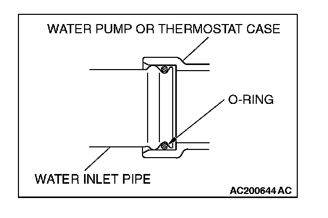 Fit an O-ring into the groove of the water inlet pipe and apply water or coolant to the circumference of the O-ring or the inside of the mounting surface of the water pump or thermostat case for insertion.
