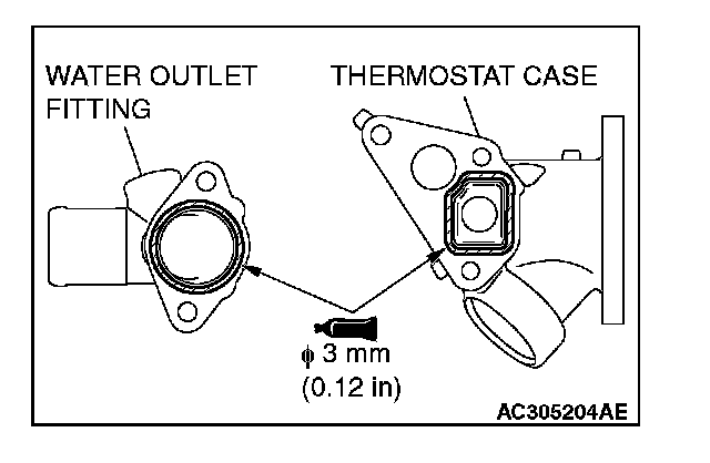 2. Apply a bead of the sealant to the cylinder head mating surface of the thermostat case or water outlet fitting as shown.