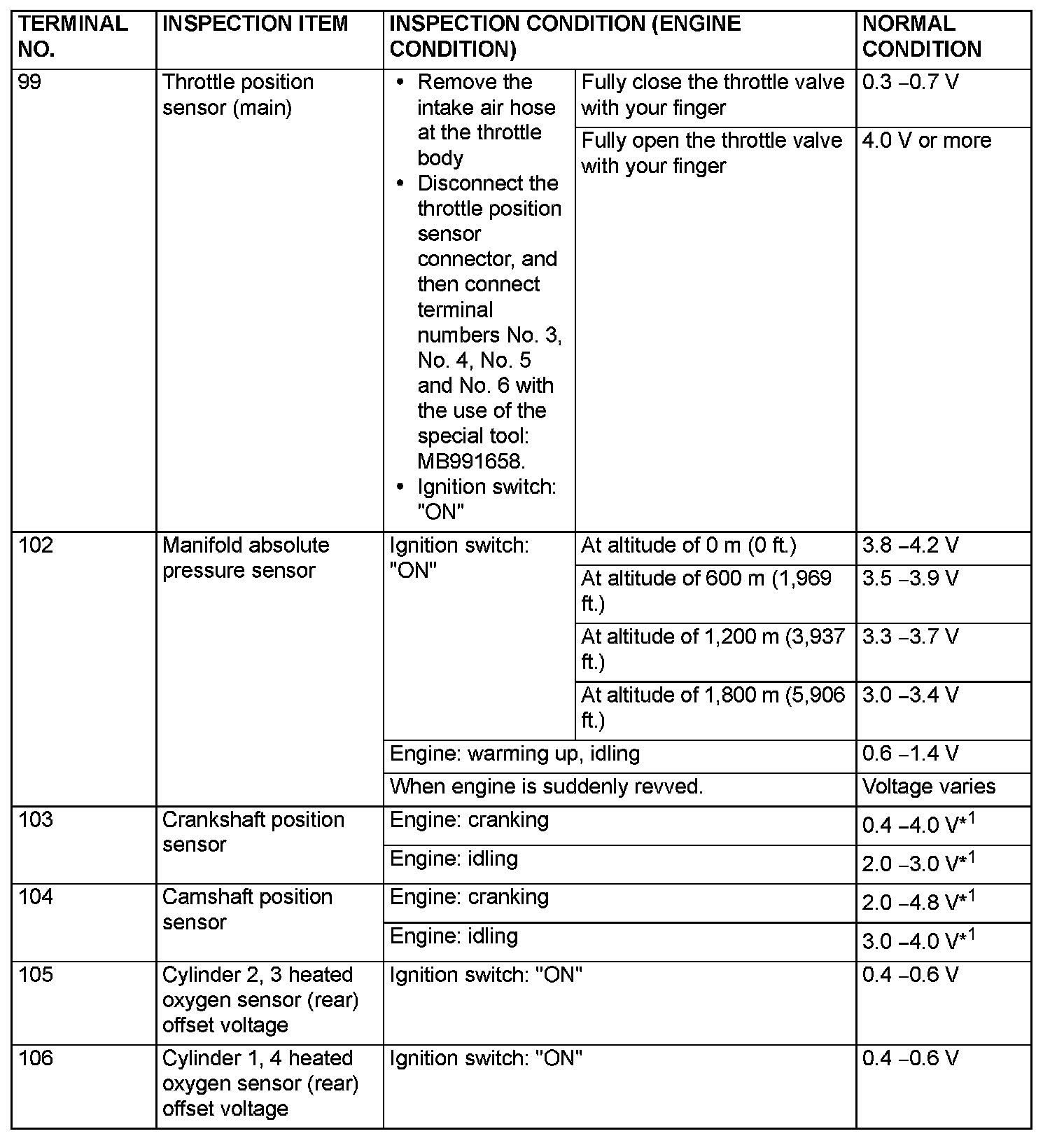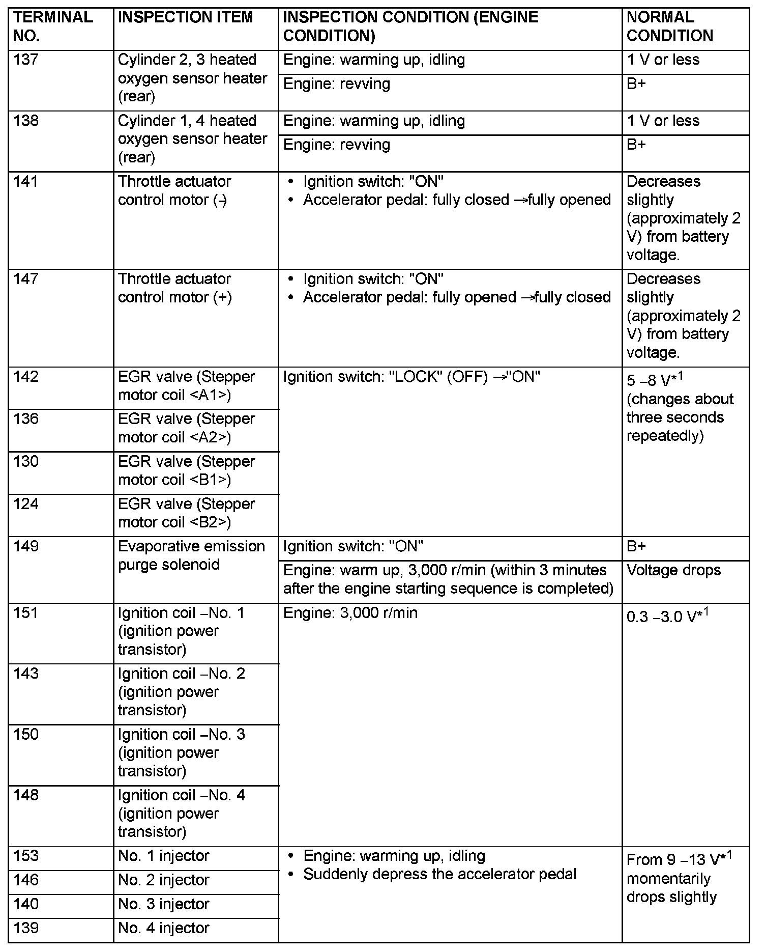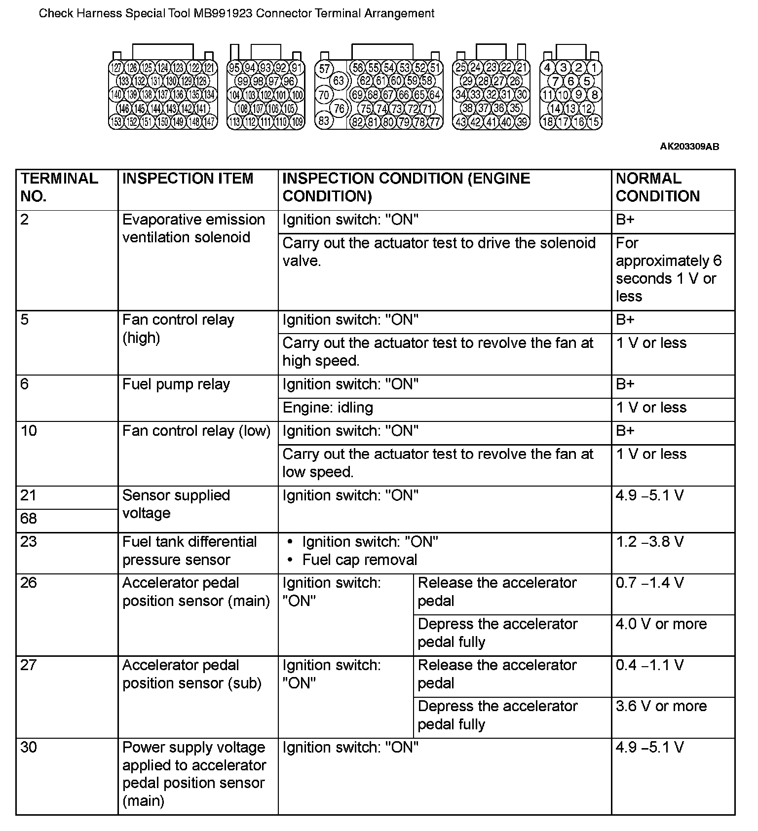 Terminal Voltage Check Chart (Part 1):