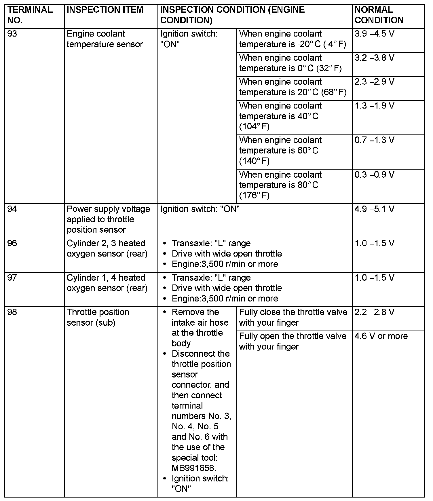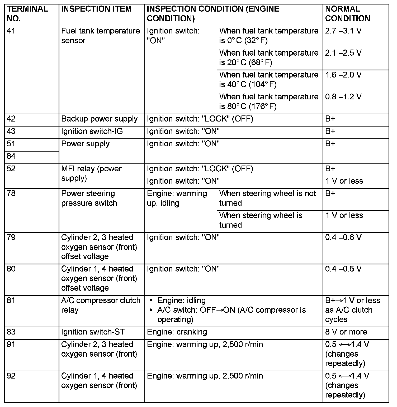 Terminal Voltage Check Chart (Part 4):