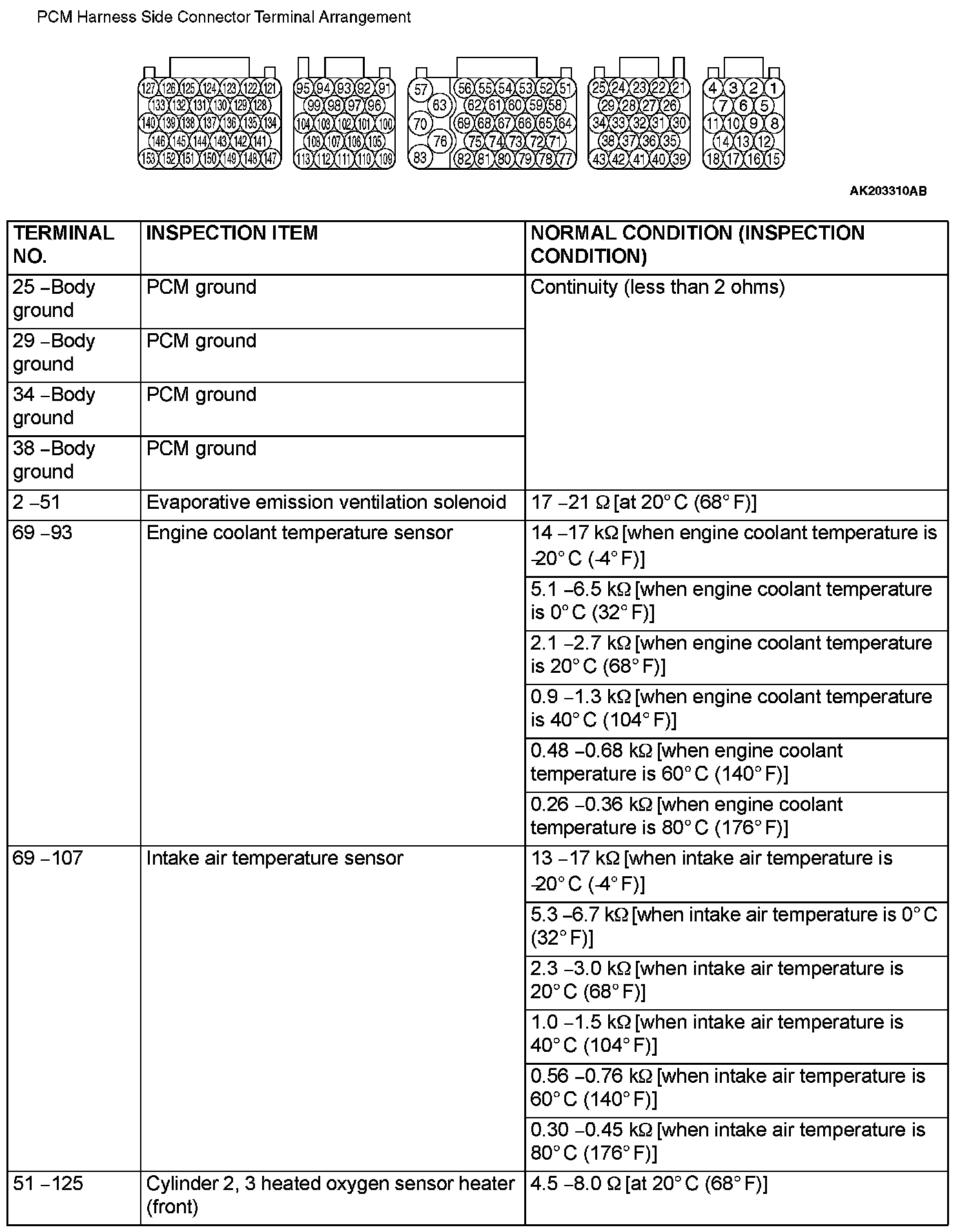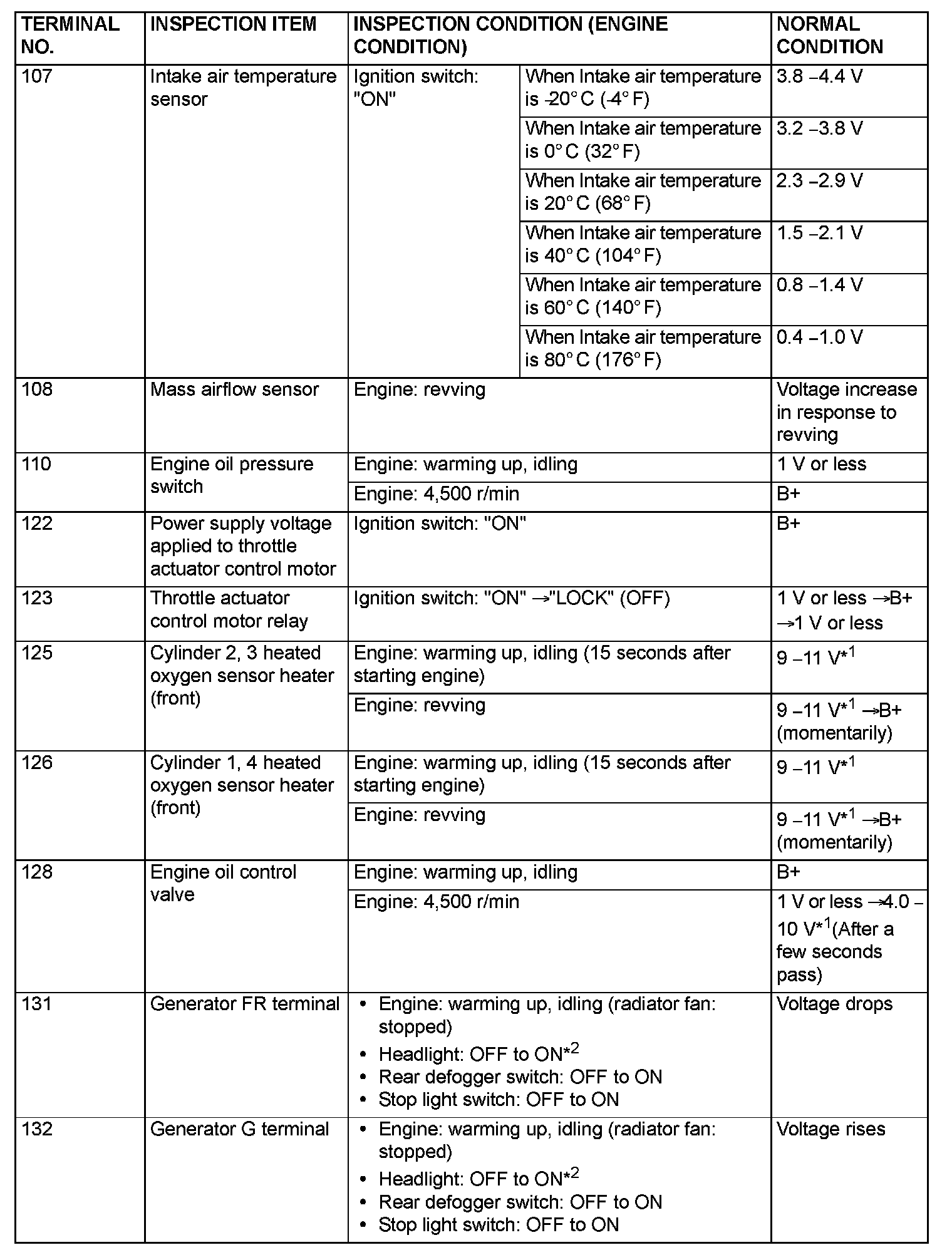 Terminal Voltage Check Chart (Part 2):