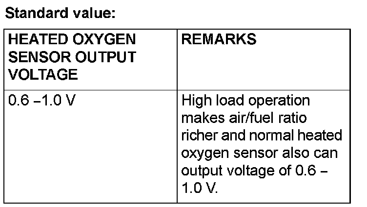 - If the temperature of sensing area does not reach the high temperature [of approximately 400 °C (752 °F) or more] even though the heated oxygen sensor is normal, the output voltage would be possibly low in spite of the rich air-fuel ratio.