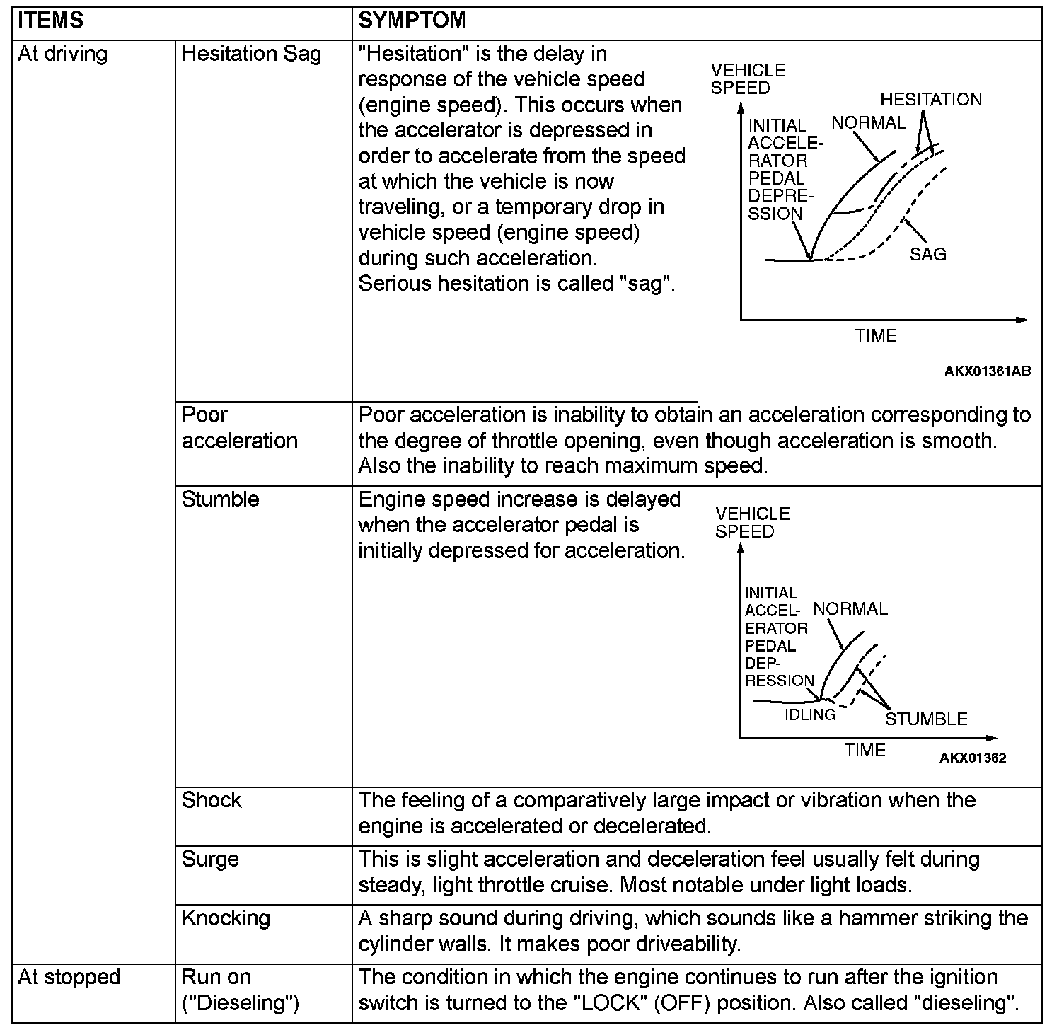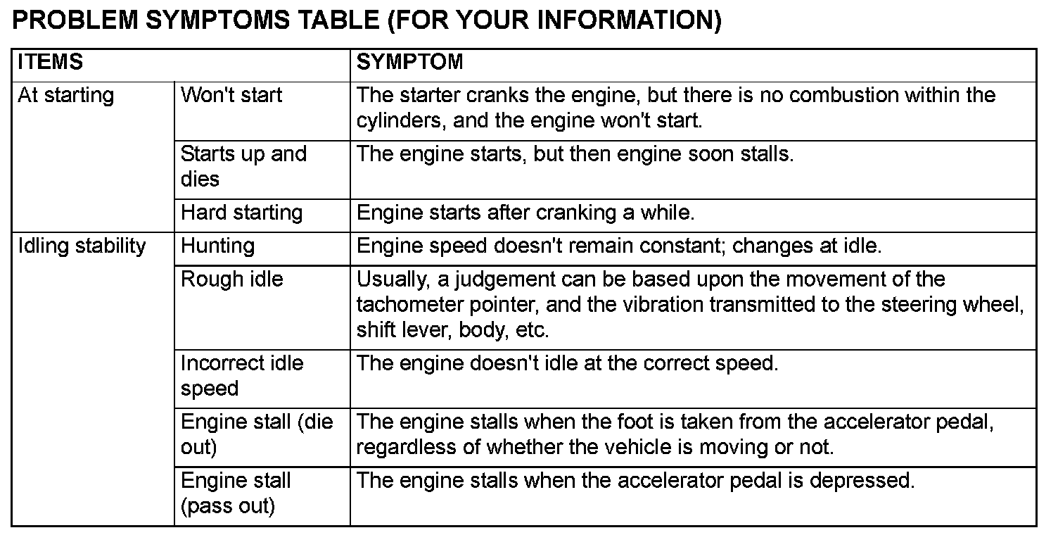 PROBLEM SYMPTOMS TABLE (FOR YOUR INFORMATION)