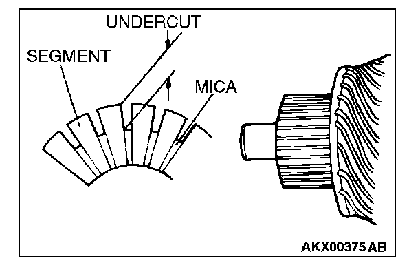 1. Check the brush for roughness of the surface that contacts the commutator and check the brush length. Replace the brush holder if this measurement exceeds the limit.