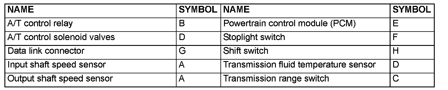 A/T CONTROL COMPONENT LAYOUT
