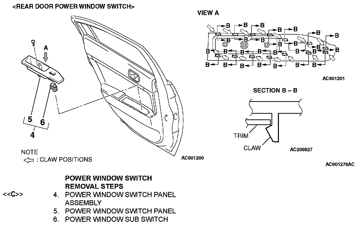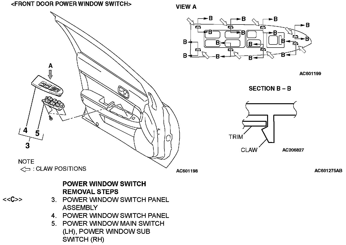 [[C]] POWER WINDOW SWITCH PANEL ASSEMBLY REMOVAL