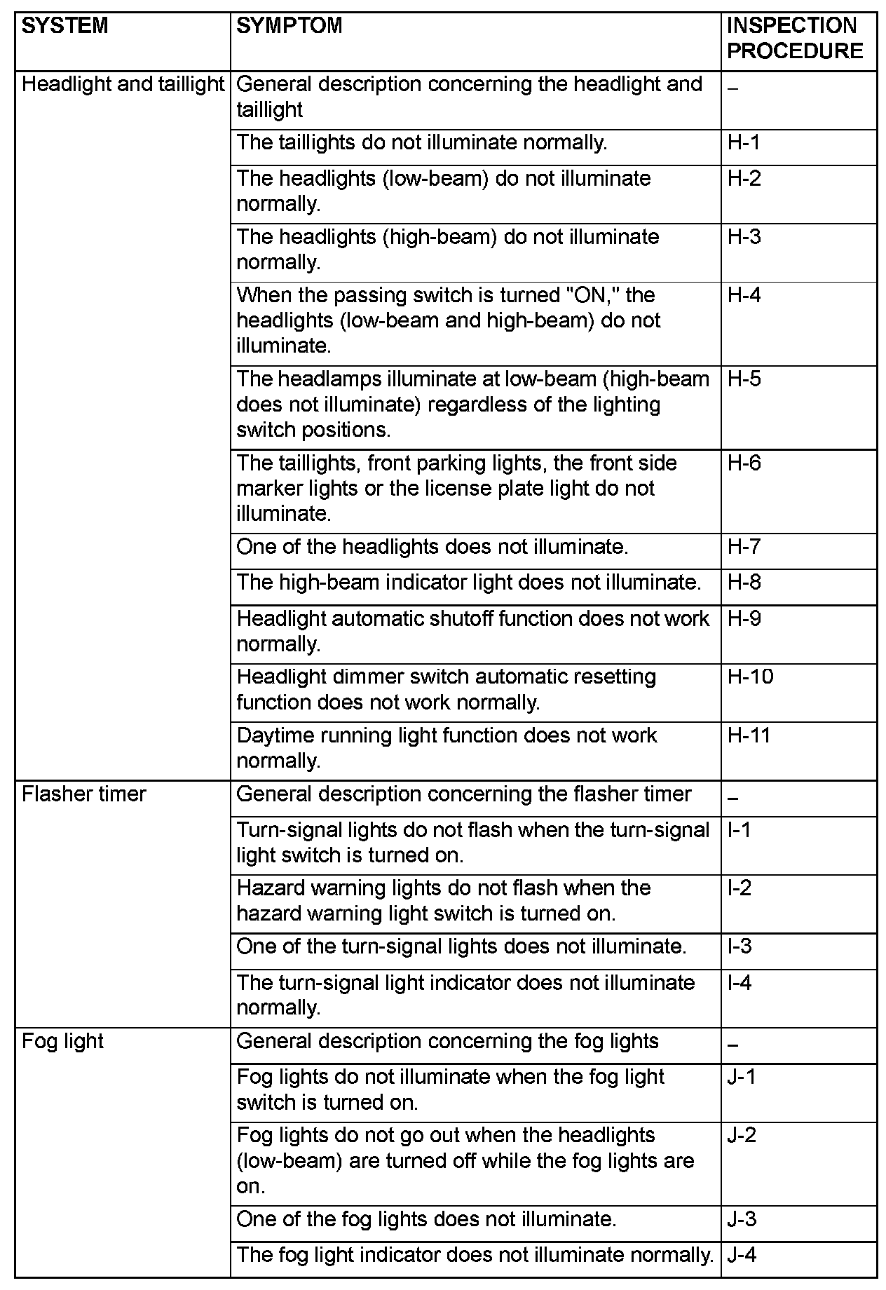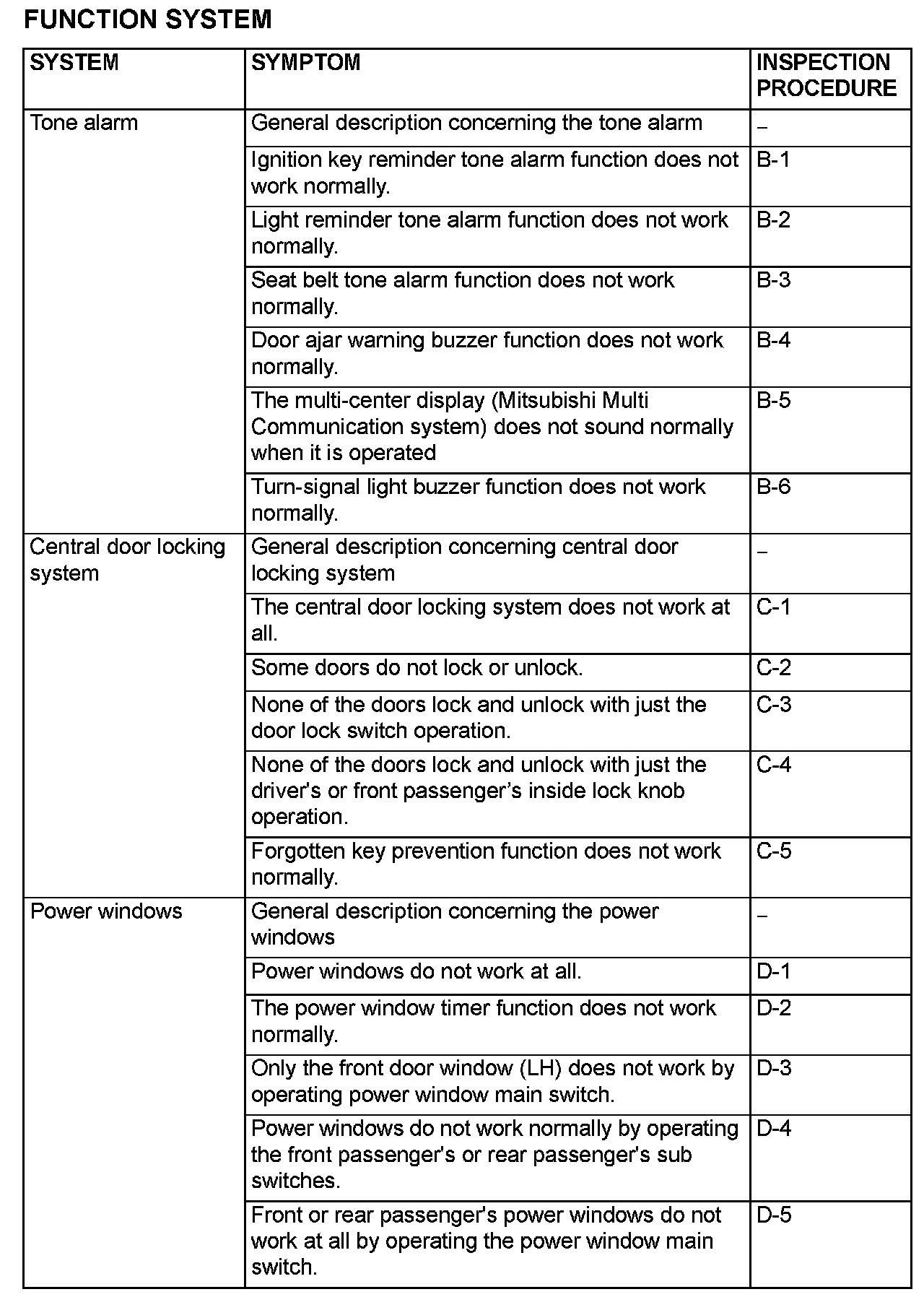 Symptom Chart - Function System (Part 1):