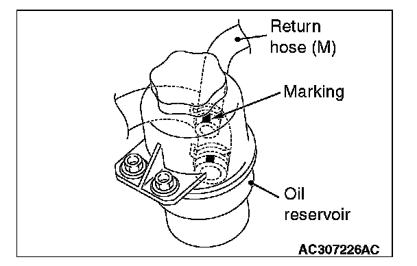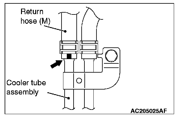 Install the return hose (M) so that the markings are positioned as shown in the illustration.