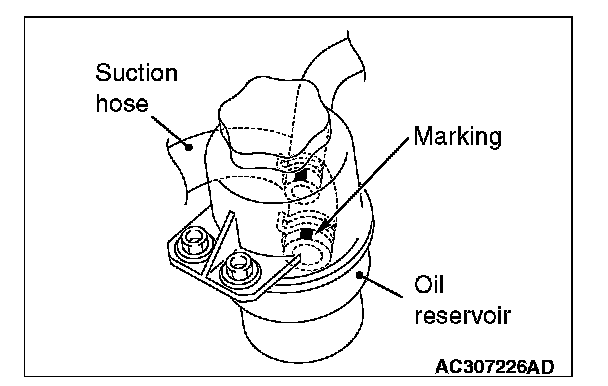 Install the return hose (R) so that the markings are positioned as shown in the illustration.