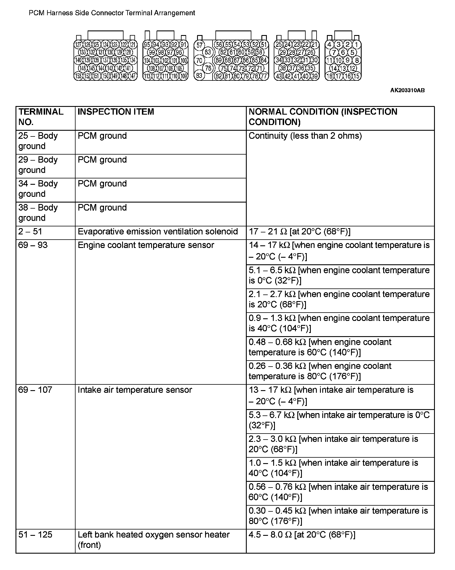 Terminal Voltage Check Chart (Part 1):