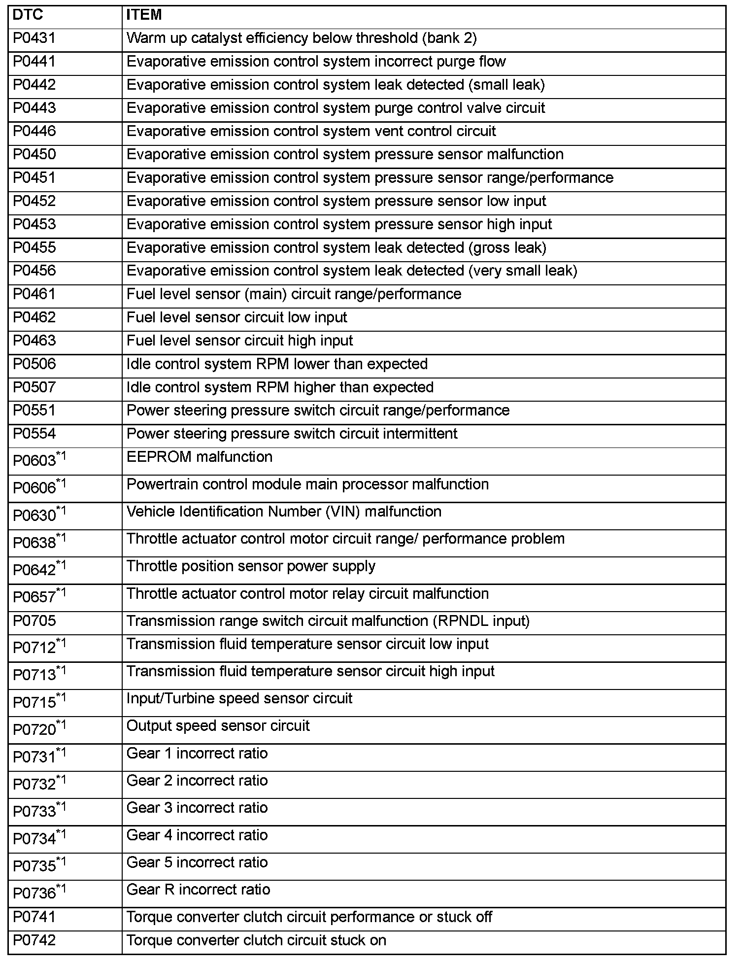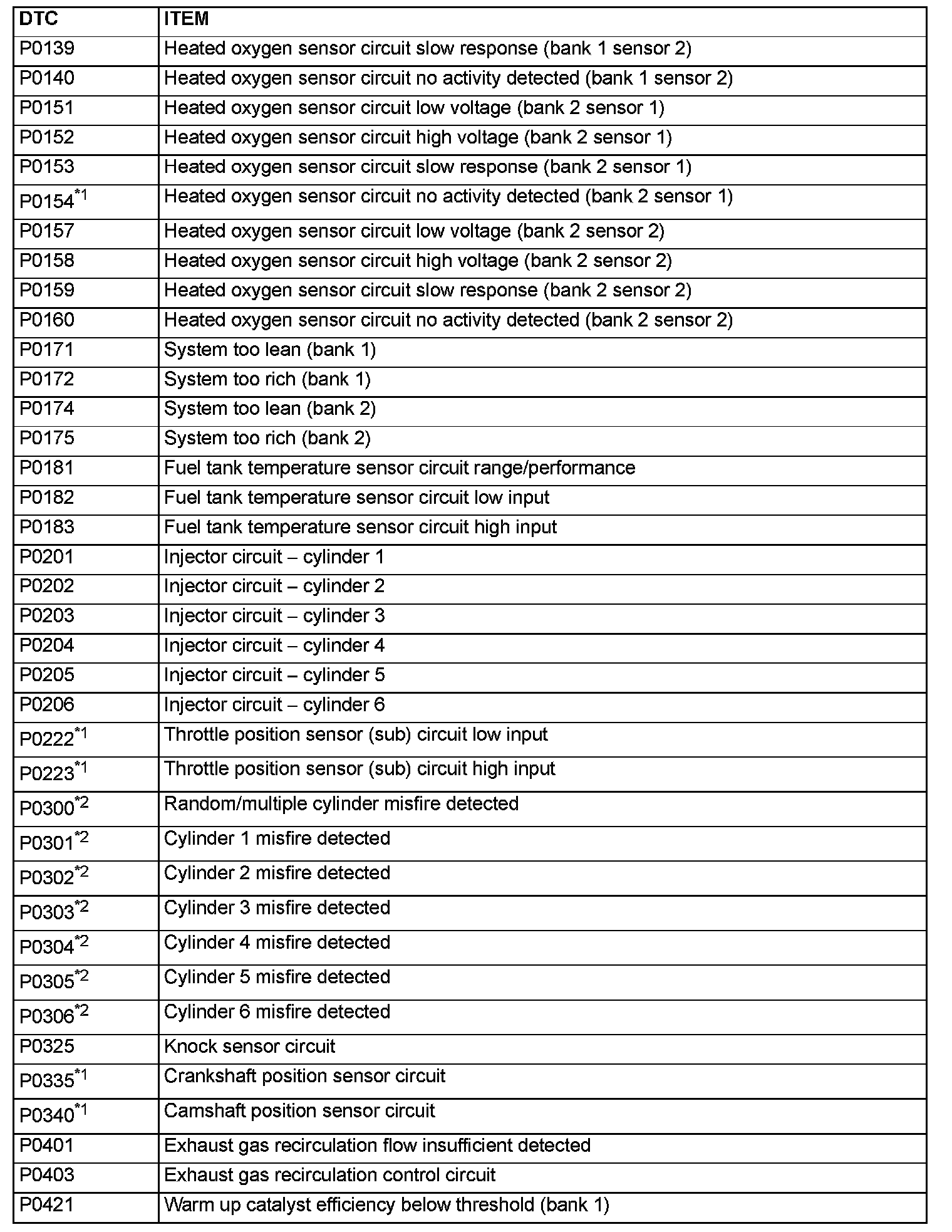 - The codes marked with a "*2" in the diagnosis code number column have the following two conditions for illuminating the Malfunction Indicator Lamp (SERVICE ENGINE SOON or Check Engine Lamp).