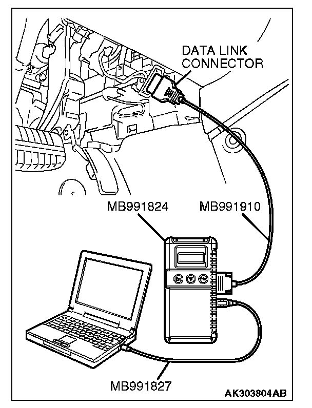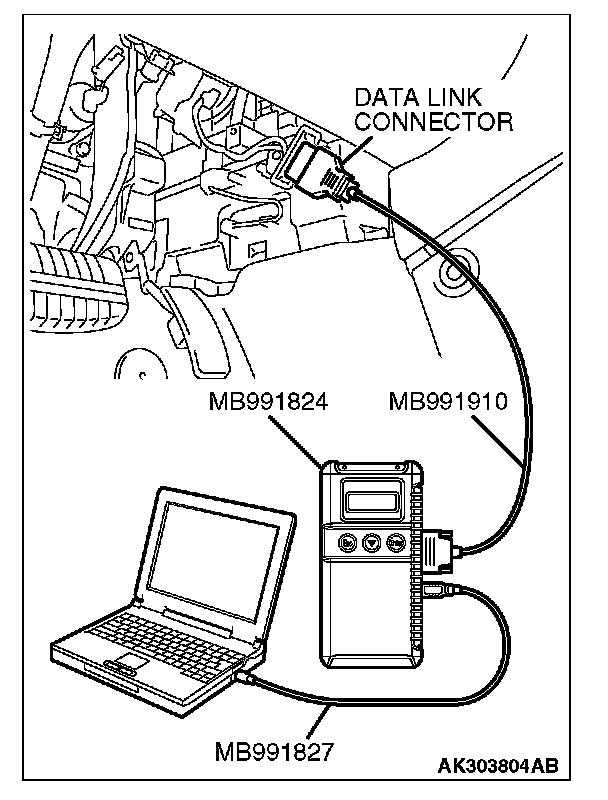 1. Connect scan tool MB991958 to the data link connector.