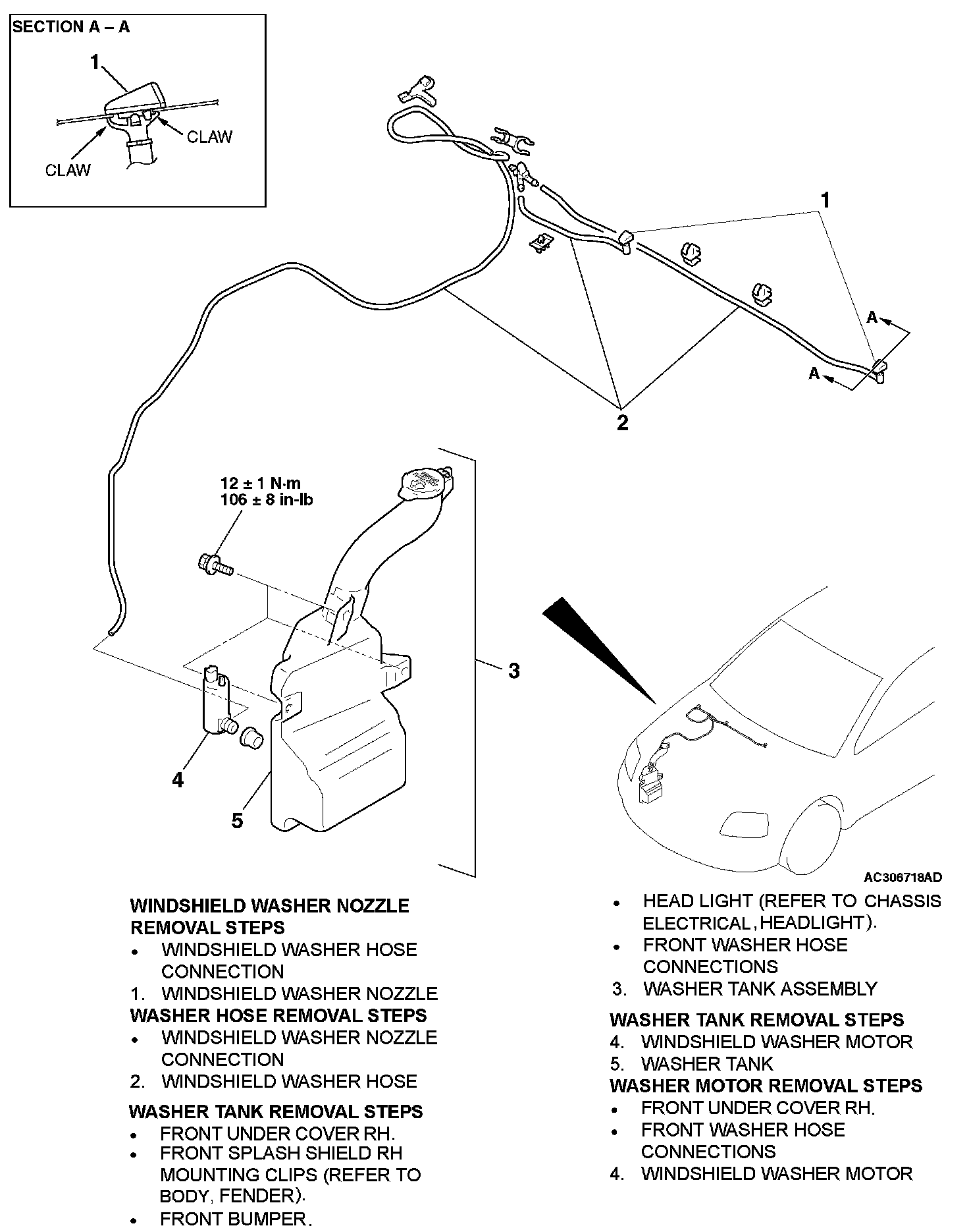 For removal and installation of the wiper and washer switch, refer to Chassis Electrical, Column switch.
