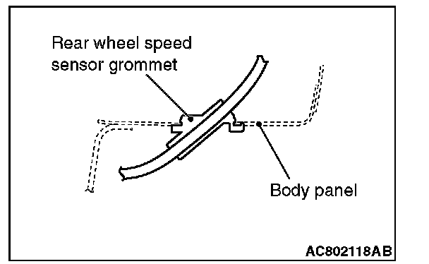 Install the rear wheel speed sensor grommet to the body panel snugly as shown in the figure.