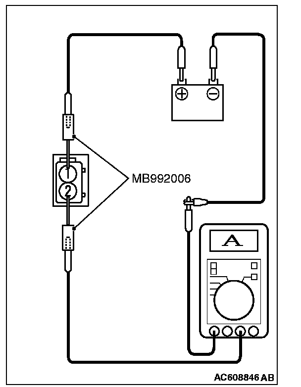 1. Connect the circuit tester to the wheel speed sensor using the special tool extra fine probe (MB992006), and measure the sensor current as a single unit.