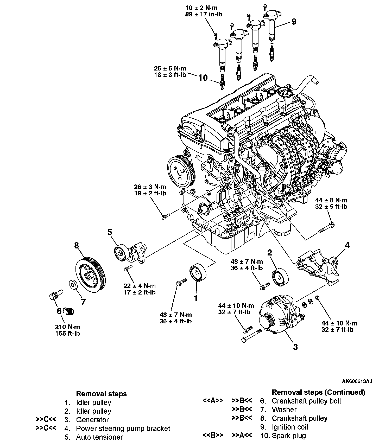 Generator: 44 ± 10 Nm (32 ± 7 ft-lb)