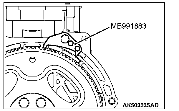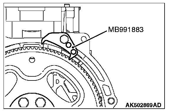 1. Use special tool MB991883 to secure the drive plate or flywheel.
