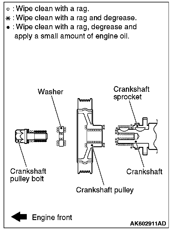 3. Wipe off the dirt on the crankshaft pulley and the crankshaft sprocket using a rag, and then remove the grease from the portion shown in the illustration.