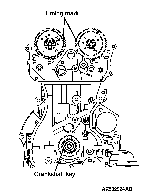 2. Align the crankshaft sprocket keys with illustrated positions.