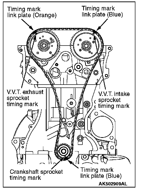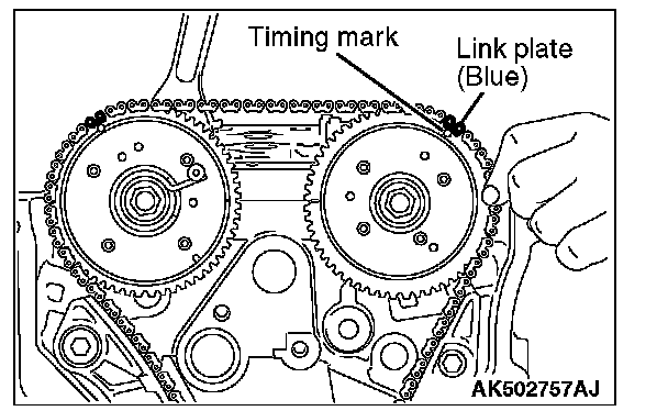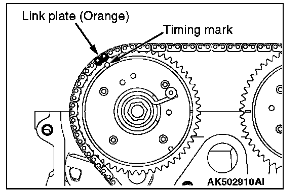 6. Make sure that the timing mark of each sprocket is aligned with the link plate of the timing chain at all of three locations.