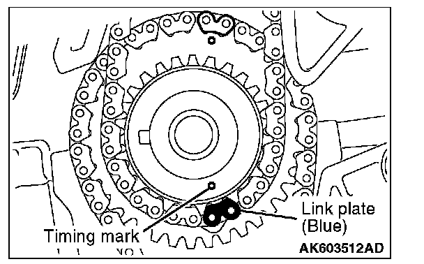 4. Align the link plate (Blue) with the timing mark of the intake V.V.T. sprocket to loop the timing chain.
