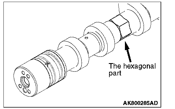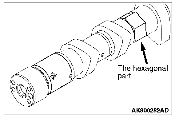 3. Make sure that the V.V.T. sprocket is securely inserted into the bottom and that the V.V.T. sprocket does not rotate with the hexagonal portion of the camshaft secured with a wrench.