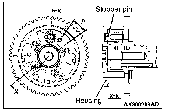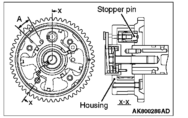 NOTE: The stopper pin is locked in the most retarded angle position.