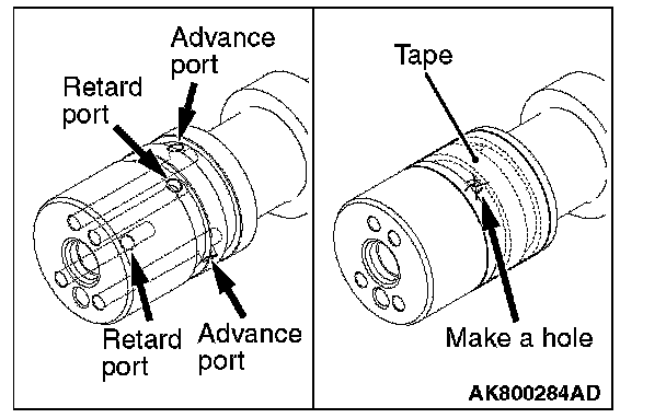 1. Seal with a tape all the intake camshaft ports for the advanced angle and the retarded angle.