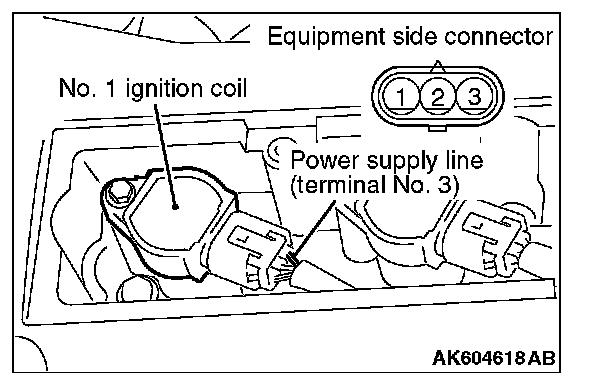 3. Set the timing light to the power supply line (terminal No. 3) of the ignition coil No. 1.