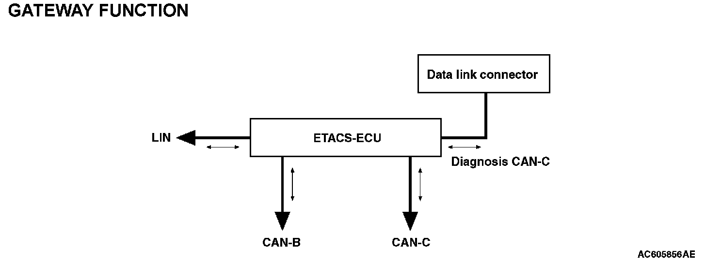 As a central ECU for the on-vehicle communication network system established in the vehicle, the gateway function is integrated into ETACS-ECU. The gateway function offers the following functions: