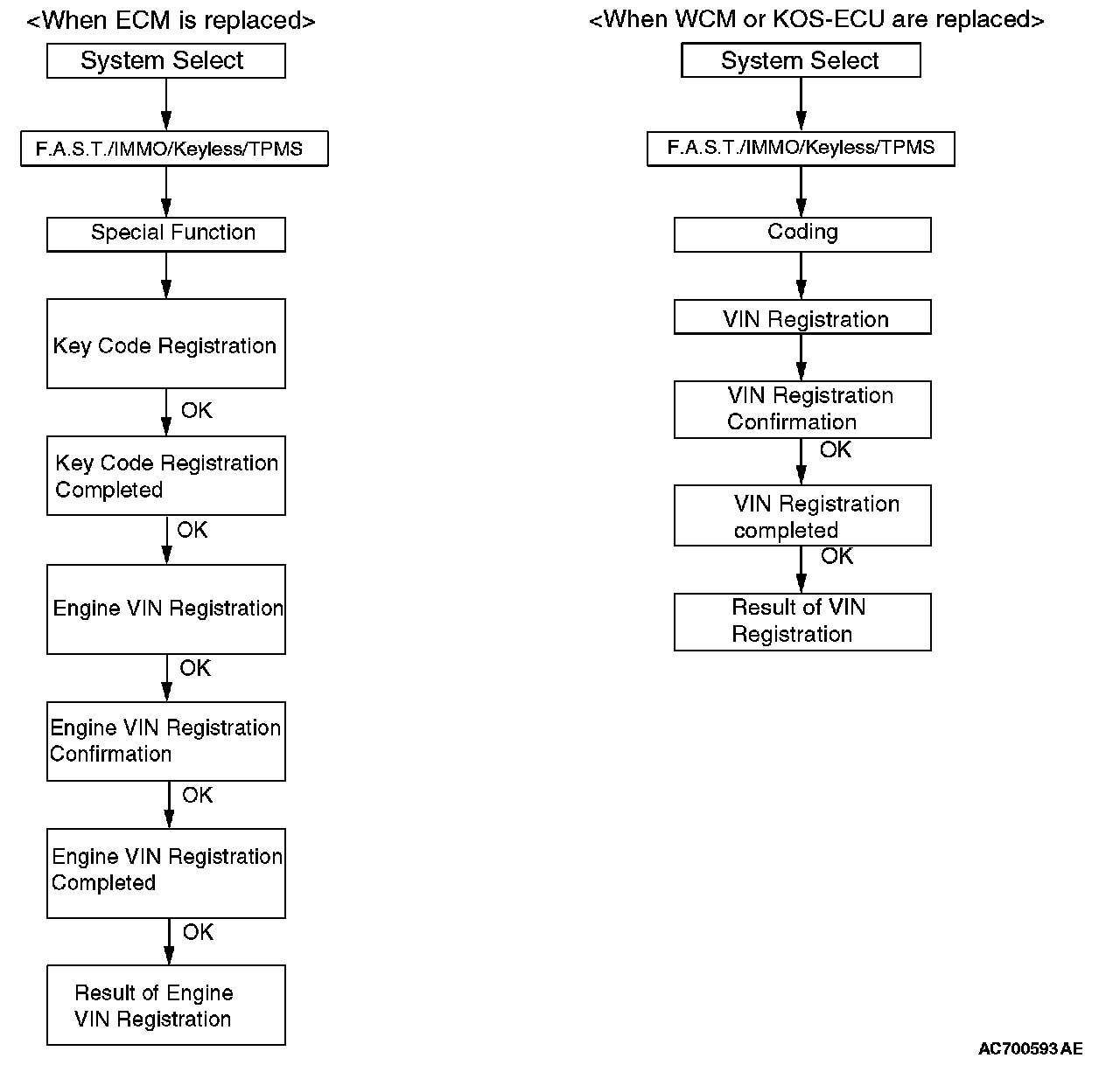 Before the VIN registration to WCM and KOS-ECU, check that the VIN of ECM and vehicle are matched.