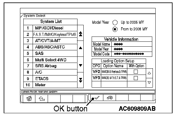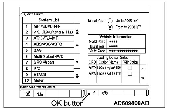 5. Select "MP/GDI/DIESEL" or "ETACS" from "System List", and then press "OK" button.
