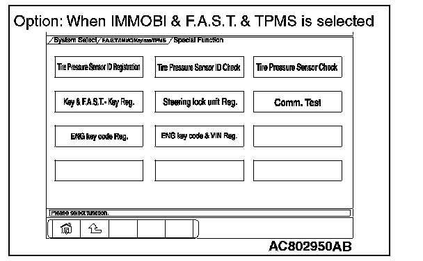 8. Select "F.A.S.T./IMMO/Keyless/TPMS" button from the "System Select" screen. Then, select the applicable option code item and push the OK button.
