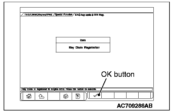 11. Push the OK button after "ENG key code & VIN Reg." is displayed.