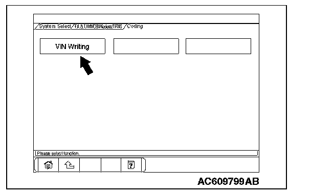 10. Select "VIN Writing" on "Coding" screen.