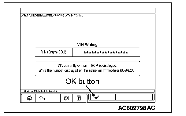 11. Push the OK button after the VIN written in the engine control module is displayed.