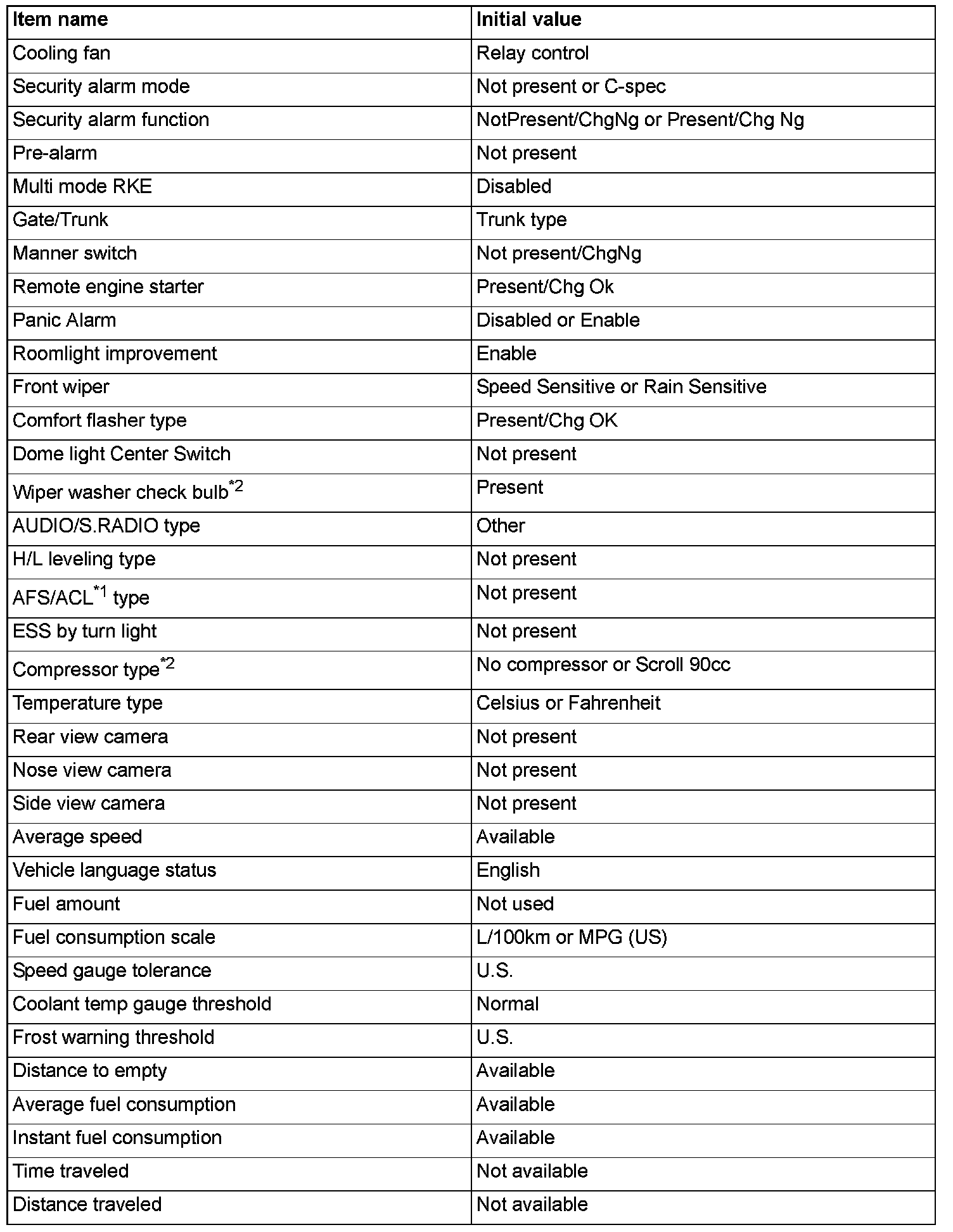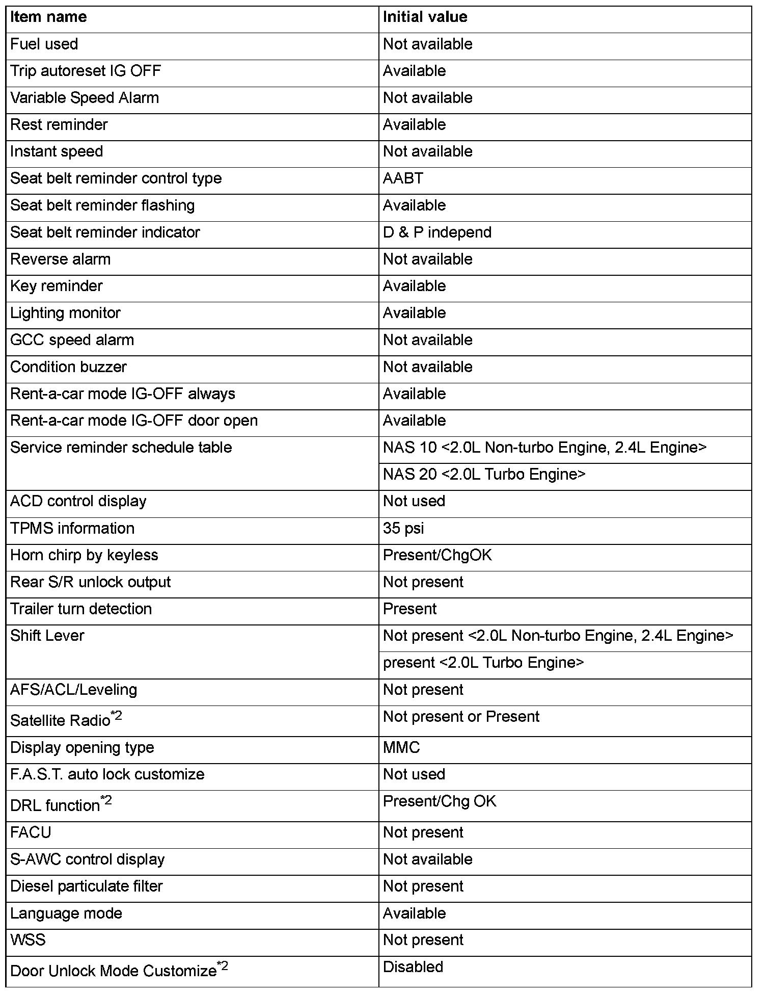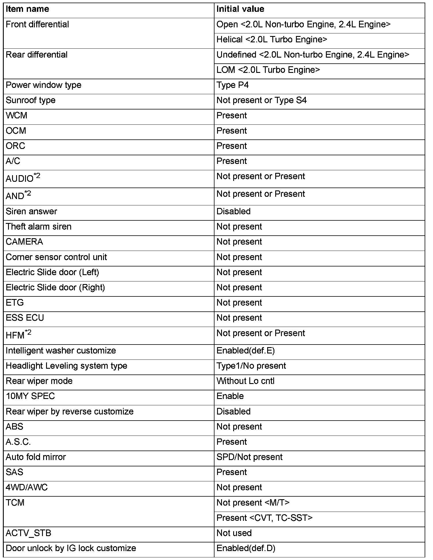 ^ If there is any item indicated by the option coding after equipment change, set ETACS-ECU so that the option coding data corresponds with the equipment content. Functions and systems do not work normally if the setting does not correspond with the equipment.