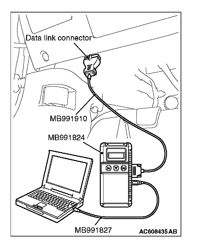 5. Connect special tool MB991910 to the data link connector of the vehicle.