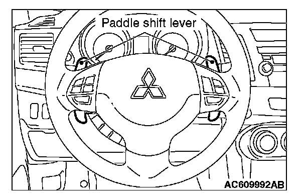 PADDLE SHIFT SWITCH CHECK1. Check that the paddle shift lever is returned to the original position quickly when the lever is released after operation of the paddle shift lever (+/- side) (pulling to the rear side of the vehicle). In addition, check for abnormal looseness, friction and abnormal noise.