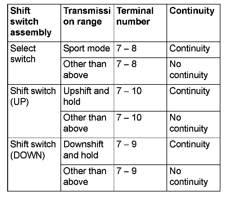 Shift Switch Assembly Continuity Check