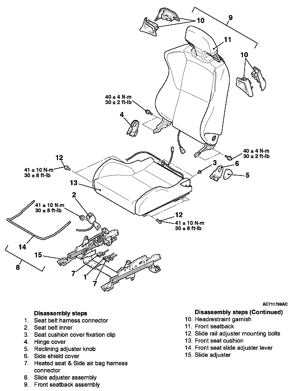 DISASSEMBLY AND ASSEMBLY[STANDARD SEAT, SPORT SEAT]