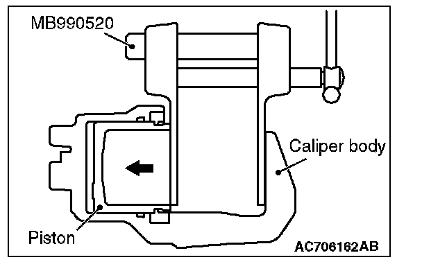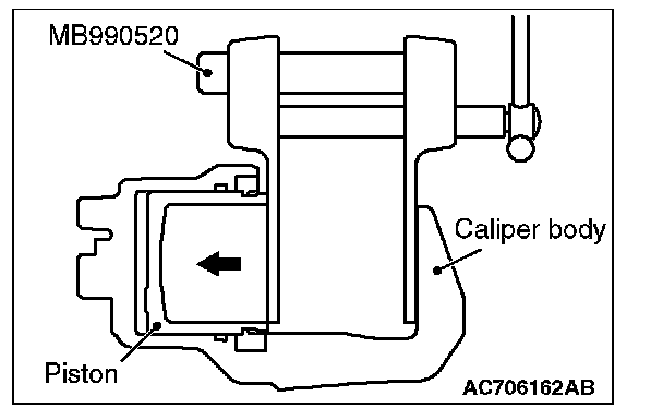 3. Clean the piston part, and press the piston into the cylinder using the special tool piston expander (MB990520).