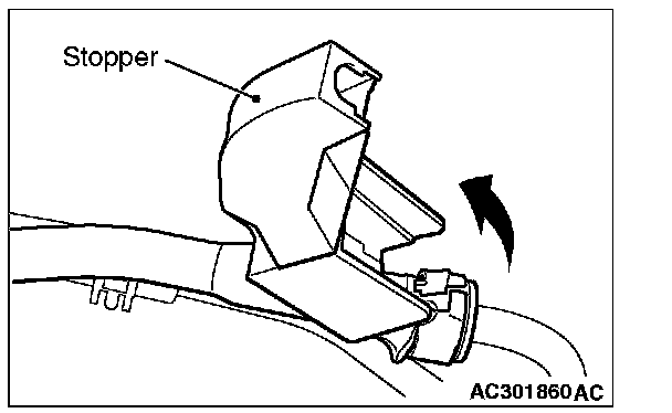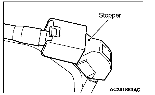 After connecting the fuel high-pressure hose, slightly pull it in the pull-out direction to check that it is installed firmly. In addition, check that there is approximately 3mm (0.12 inch) play. After the check, install the stopper securely.