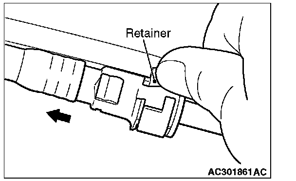 2. Raise the retainer of the fuel high-pressure hose and pull out the fuel high-pressure hose in the direction shown in the figure.