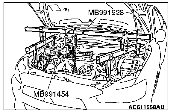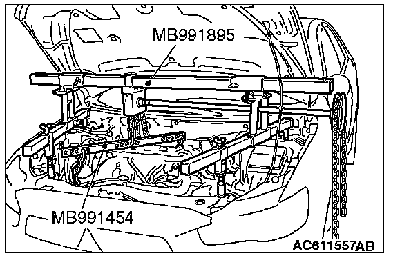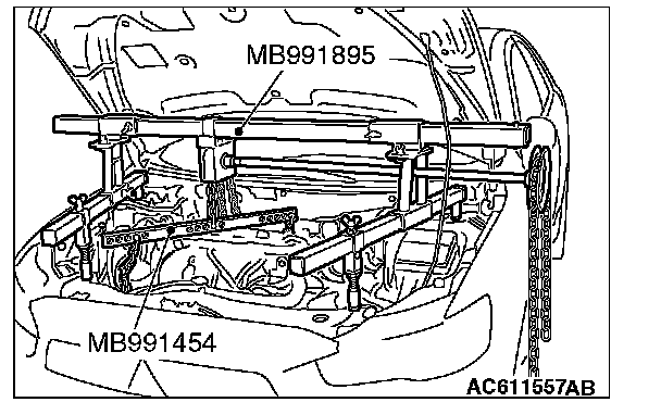 3. Install special tool MB991454, MB991928 or MB991895 which was installed for supporting the engine and transaxle assembly when the timing chain was removed.