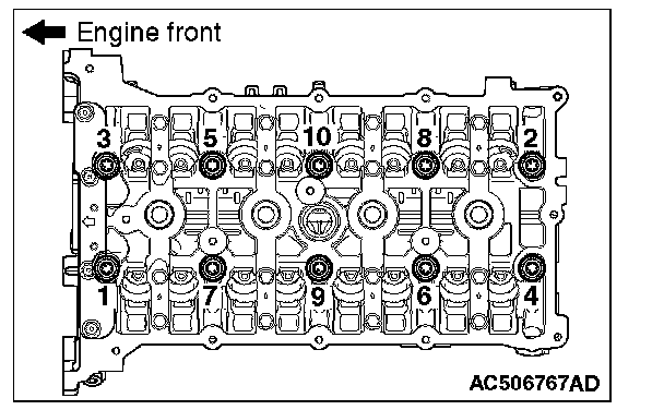 1) Tighten the cylinder head bolts to the specified torque in the order of number shown in the figure.