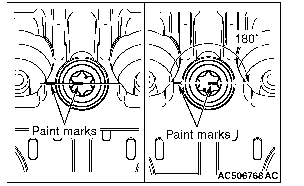 2) Put a paint mark on the cylinder head bolt head and cylinder head, tighten to 180 ± 2 degrees angle in the order of number shown in the figure, and check that the paint mark on the cylinder head bolt head aligns with the paint mark on the cylinder head.