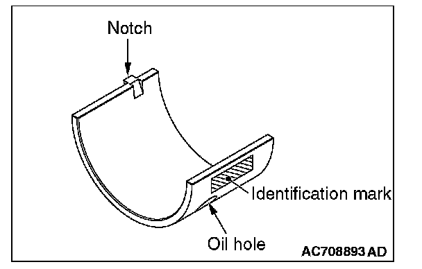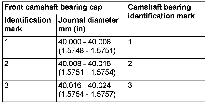 When replacing the camshaft bearing, according to the identification mark of front camshaft bearing cap in the table below, select a camshaft bearing with the corresponding size. Note that the identification mark of camshaft bearing is stamped on the place shown in the figure.