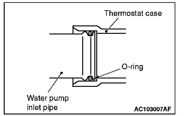 Fit the O-ring in the water pump inlet pipe groove, wet the O-ring circumference or the pipe mounting area inner wall, and then insert the O-ring.