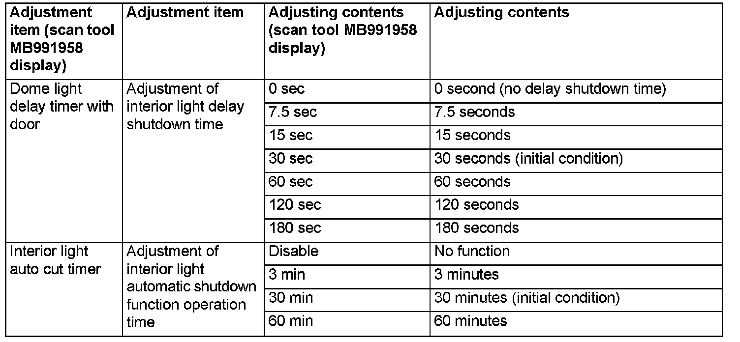 By operating the ETACS system or MMCS of scan tool MB991958, the following functions can be programmed. The programmed information is held even when the battery is disconnected.